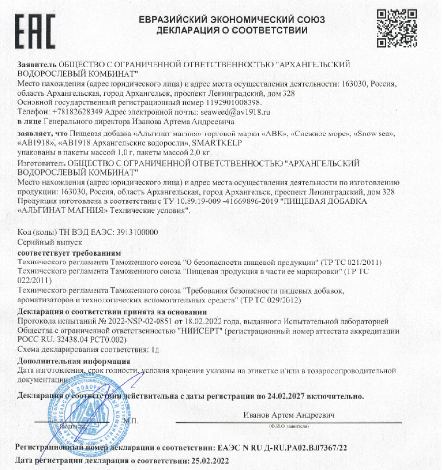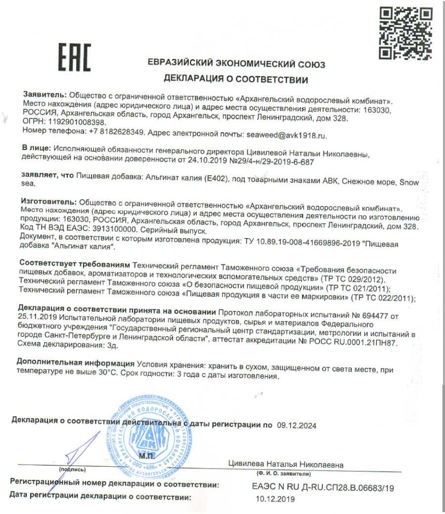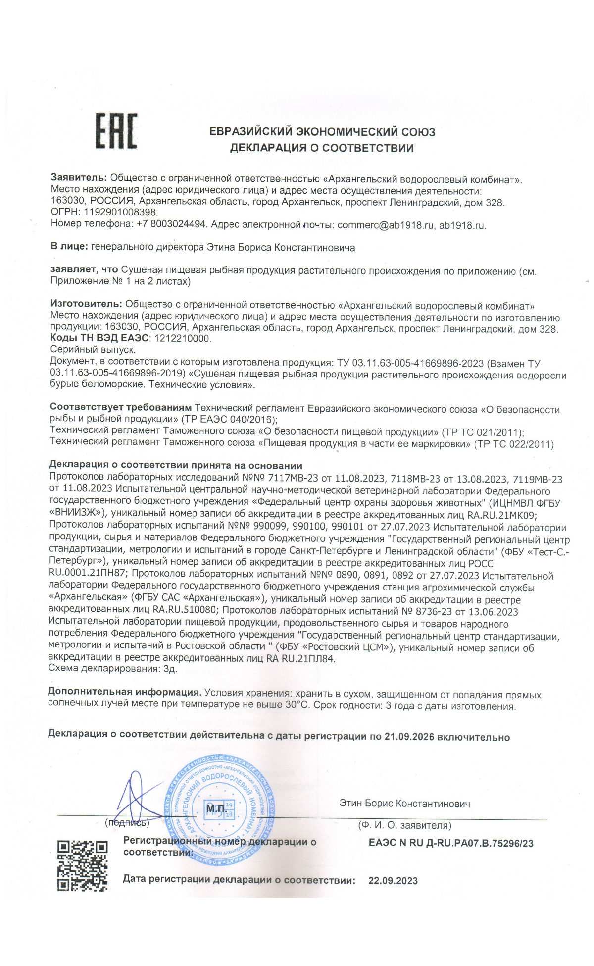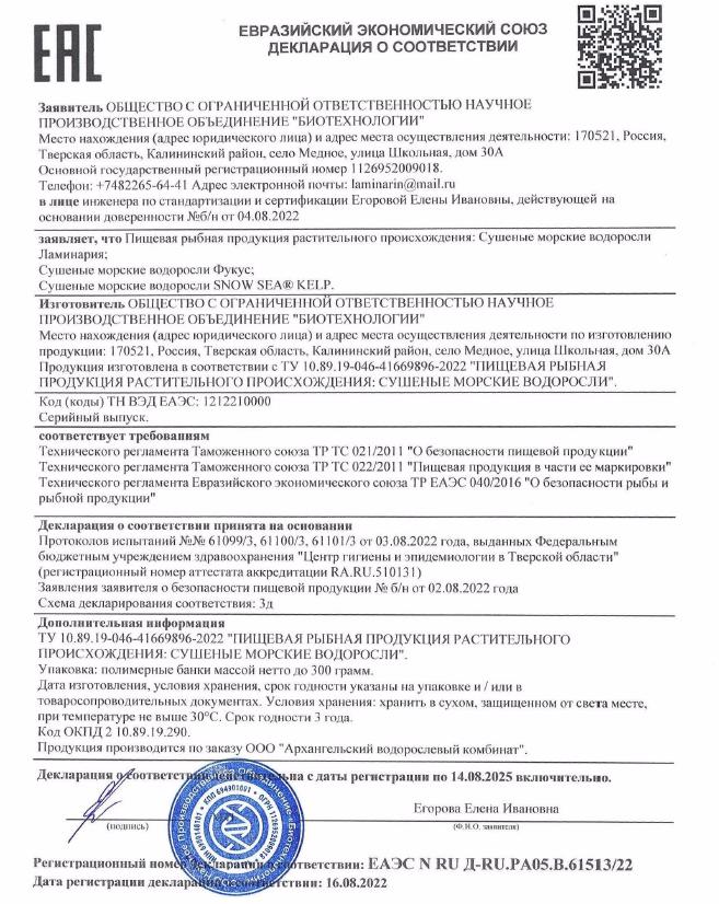 Декларация Сушеная пищевая продукция 10 позиций 22.09.2023