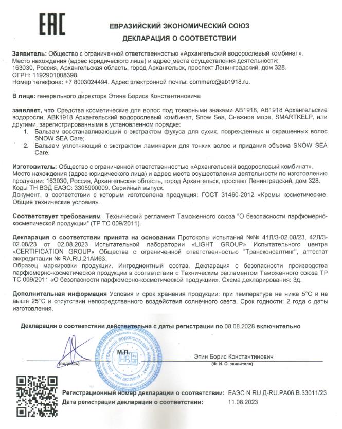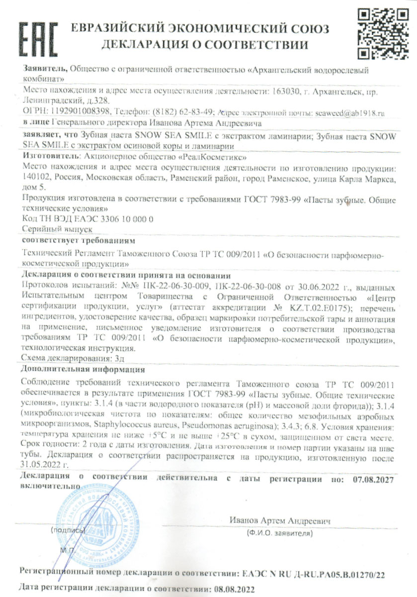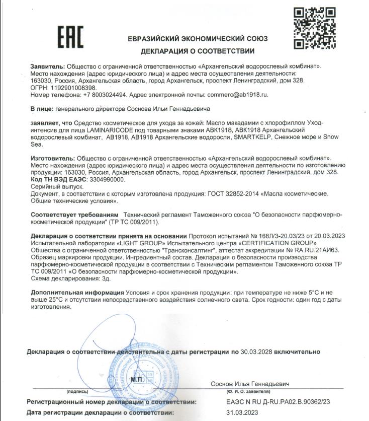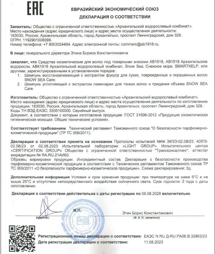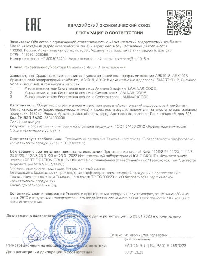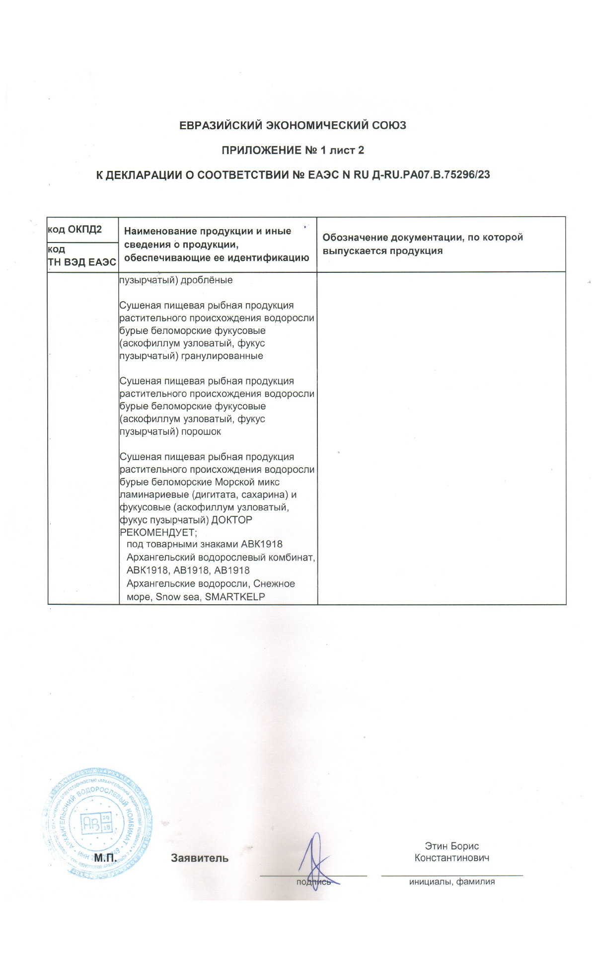 Декларация Сушеная пищевая продукция 10 позиций 22.09.2023