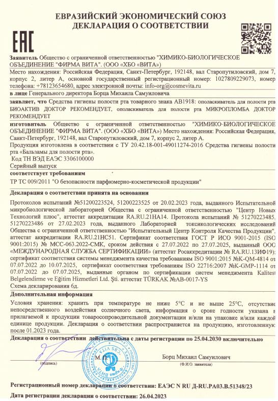 Зубная паста МИКРОПЛОМБА ДОКТОР РЕКОМЕНДУЕТ, 85 мл