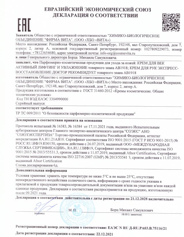 Экспертное заключение Крем для лица
