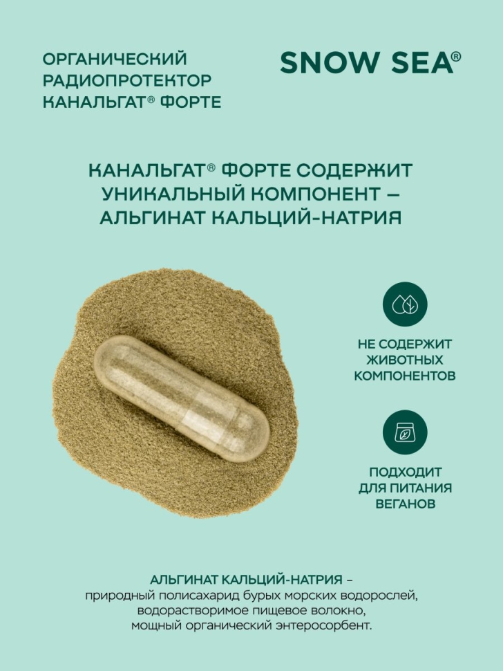 Органический энтеросорбент. Свойства КАНАЛЬГАТА® ФОРТЕ обусловлены свойствами альгината кальций-натрия, входящего в его состав. Не содержит животных компонентов, подходит для веганов. Способствует: