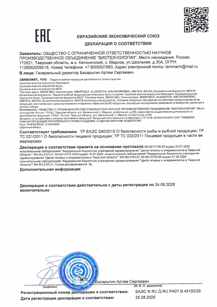 Предупреждение: не рекомендуется применять при индивидуальной непереносимости морепродуктов, повышенной чувствительности к йоду и гиперфункции щитовидной железы.